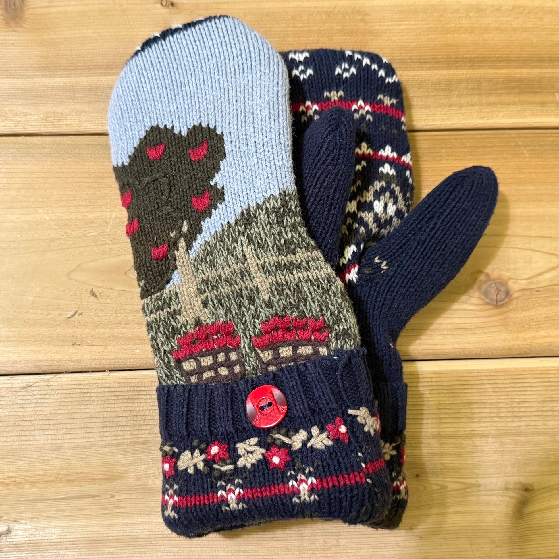 These mittens are made with recycled sweaters and are lined with new fleece. They'll keep your hands warm and toasty this coming winter and make great gift ideas!
